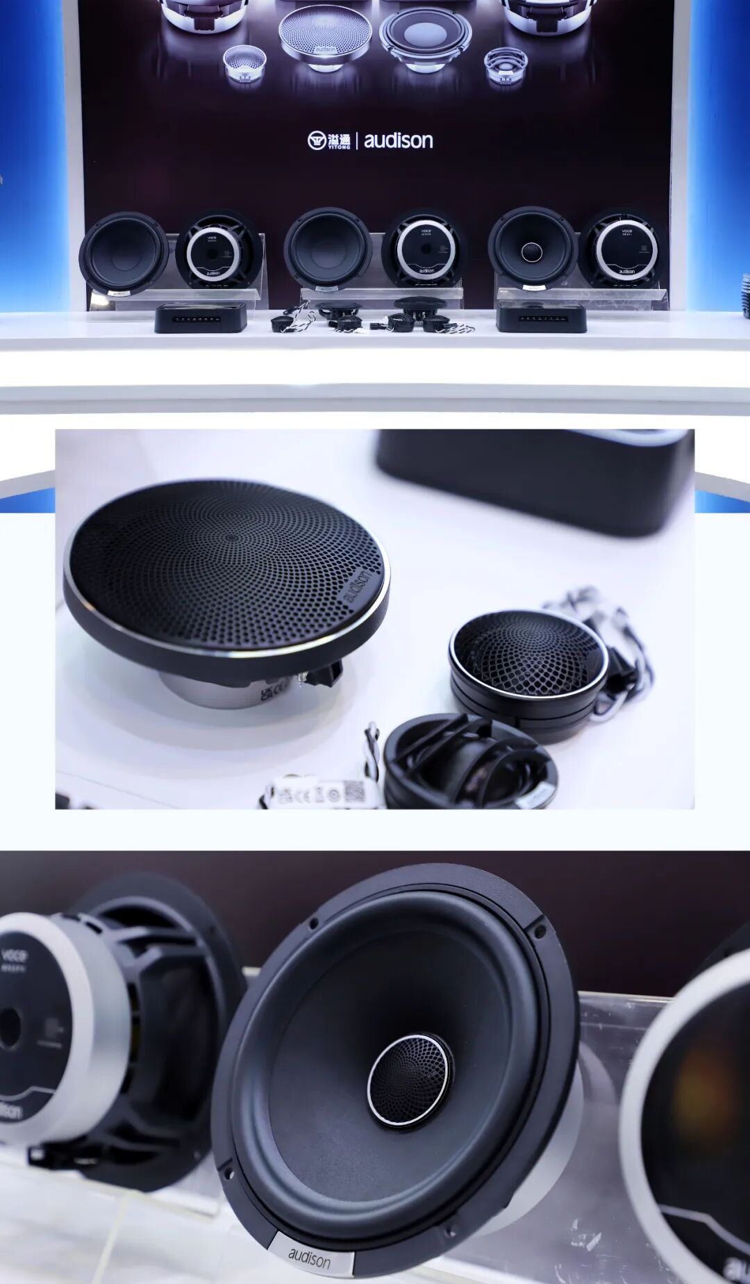 意大利歐迪臣此次攜全新 VOCE II系列揚聲器亮相,這是其揚聲器產(chǎn)品線首次以完整矩陣亮相。VOCE II系列涵蓋從高音單元至超低音的全品類解決方案,包括1.1寸絲膜球頂高音、6.5寸同軸大功率單元、10/12寸超薄低音揚聲器等。值得注意的是, VOCE II系列所有高音揚聲器、兩分頻和同軸套裝均獲得 HIRES 高清音頻認(rèn)證,獨有的聲學(xué)技術(shù),將極大優(yōu)化車內(nèi)聲場體驗,將專業(yè)影院級音效融入車載空間。